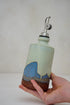 Approximately 6.5 tall with pour, 3.25". Glossy glaze interior. Silk matte exterior. Pinchys.